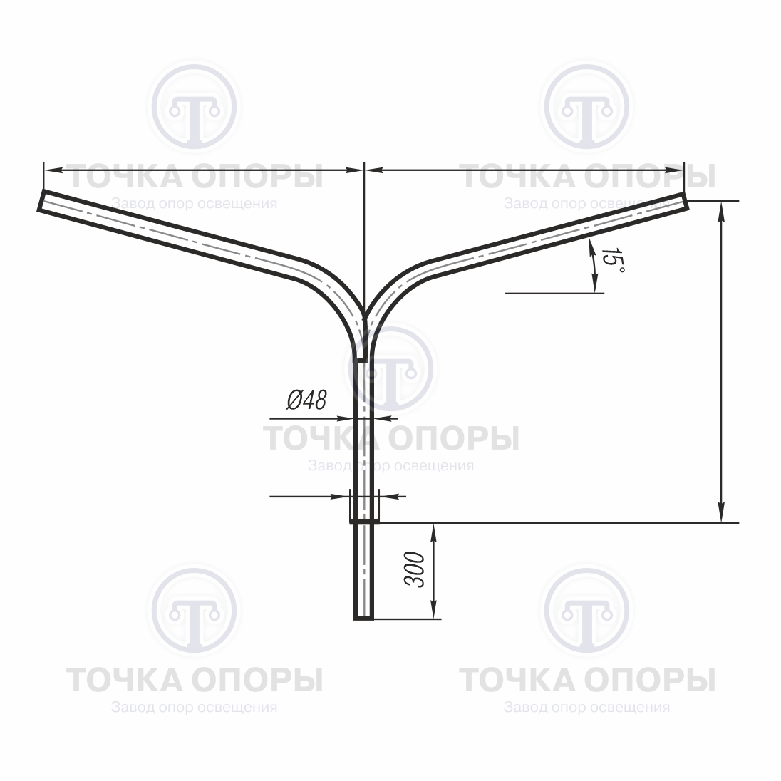 Кронштейн консольный двухрожковый разнонаправленный К2-2,0-2,0-180-Ф4